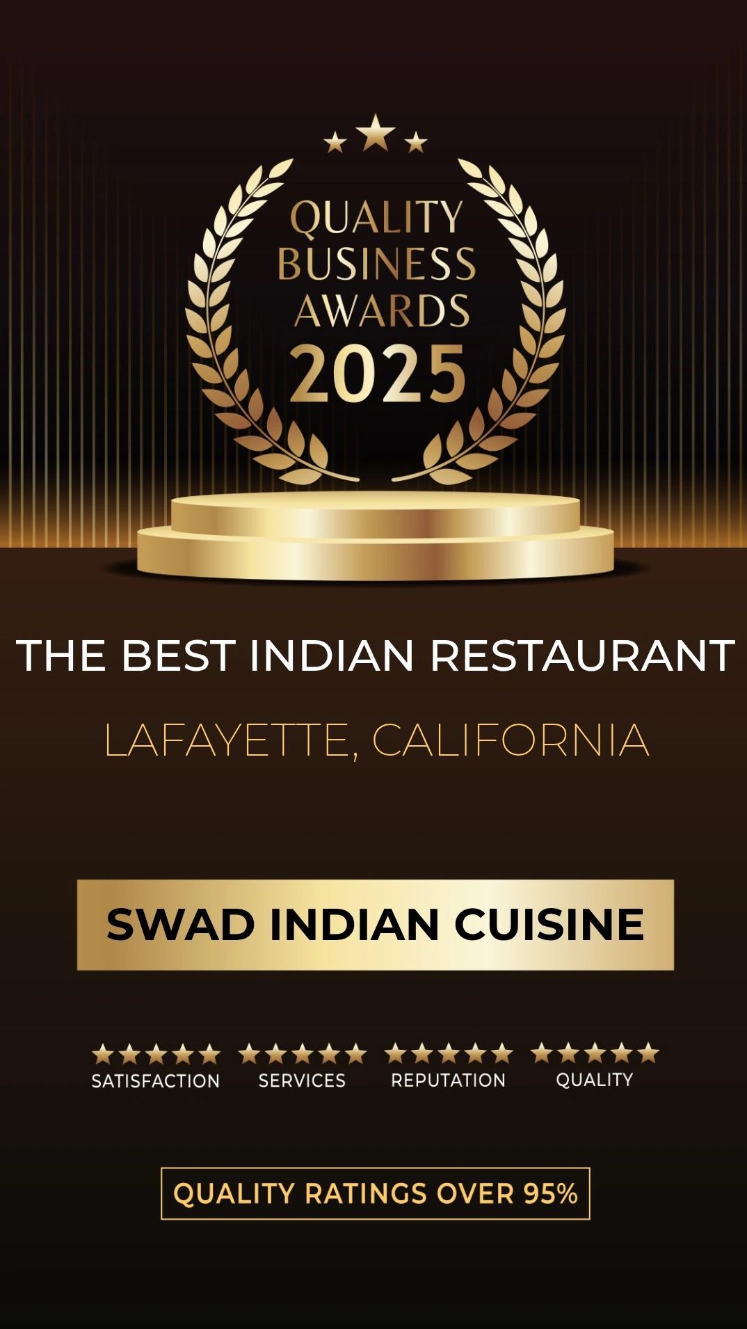 The team is overwhelmed by the love and gratification of the community of East Bay Area for making us the best Indian Cuisine in 2025 and rate us 95% for our taste, service & quality.