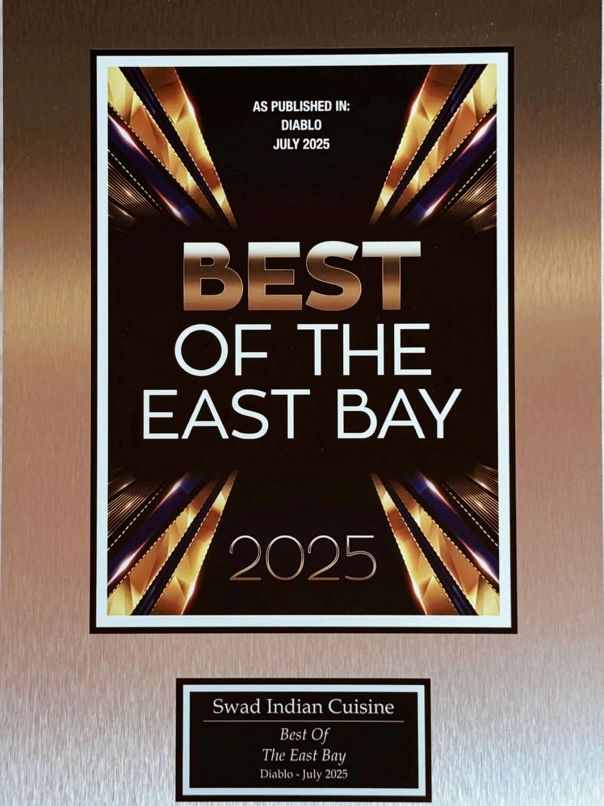 Swad is grateful to the community of East Bay Area for making us the best Indian Cuisine in 2024 and for the past several years. Your trust in us gives us the courage & strength to strive more and serve the community of Lafayette, surrounding and entire East Bay Area with the best of our abilities, love and care.